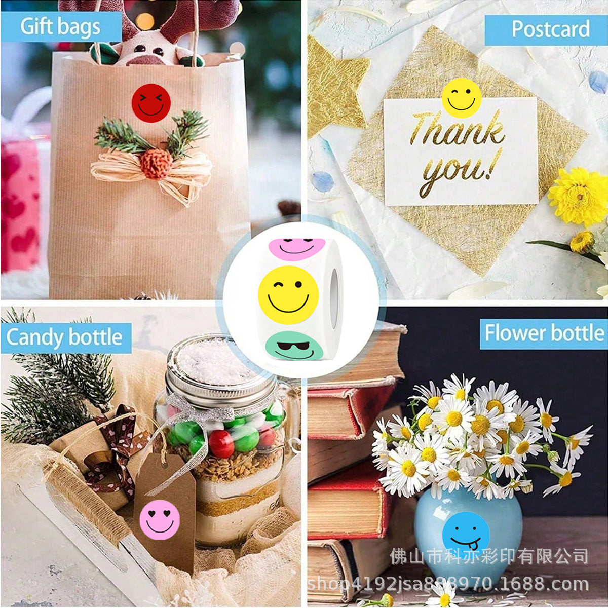 Cute Smiley Face Sticker Roll – Mixed Colors Reward Labels (500pcs)