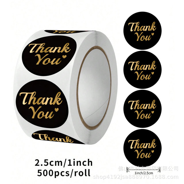 Pink/Black Foil Thank You Stickers – Round Envelope Seal Roll